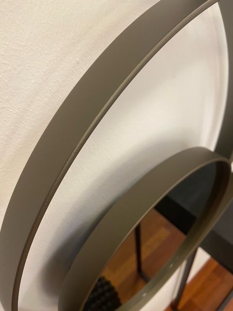 Der Spiegel Soley wird durch Handarbeit geformt und gebogen. Der Spiegel besticht durch kunsthandwerkliche Ausstrahlung und durch die drei Ringe, die sich gegnseitig überlappen, zeichnet sich noch eine dreidimensionale Wirkung ab.